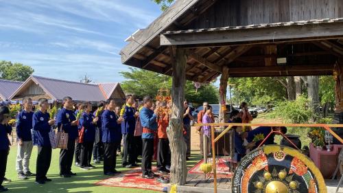 นายอำเภอกมลาไสย พร้อมด้วยนางสำราญ เพิ่มสิน พัฒนาการอำเภอกมลาไสย ดาบตำรวจอดุลย์ พละสาร นายกเทศมนตรีตำบล
