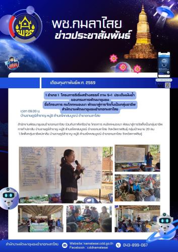 พช.กมลาไสย ดำเนินการ1อำเภอ1โครการริเริ่มสร้าสรรค์ตาม"5+1ประเด็นเน้นย้ำของกรมการพัฒนาชุมชน บ้านราษร์สำราญ ตำบลโคกสมบูรณ์